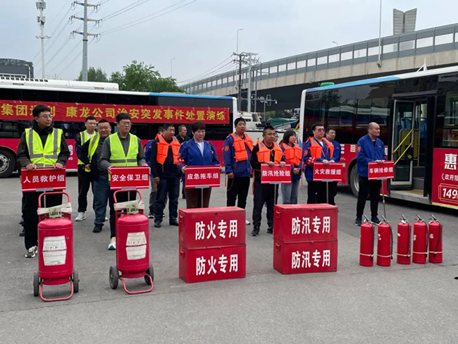 為提高職工的消防安全責(zé)任意識(shí),進(jìn)一步加強(qiáng)安全生產(chǎn)、反恐安保、消防、防汛等工作,4月24日上午,通利康龍公司、華龍公司聯(lián)合開展綜合應(yīng)急演練活動(dòng)。市公安局公交(軌道)分局相關(guān)部門負(fù)責(zé)人、客運(yùn)集團(tuán)相關(guān)部門負(fù)責(zé)人、公司相關(guān)部門負(fù)責(zé)人、各車隊(duì)隊(duì)長及駕駛員代表參加了本次活動(dòng) 。