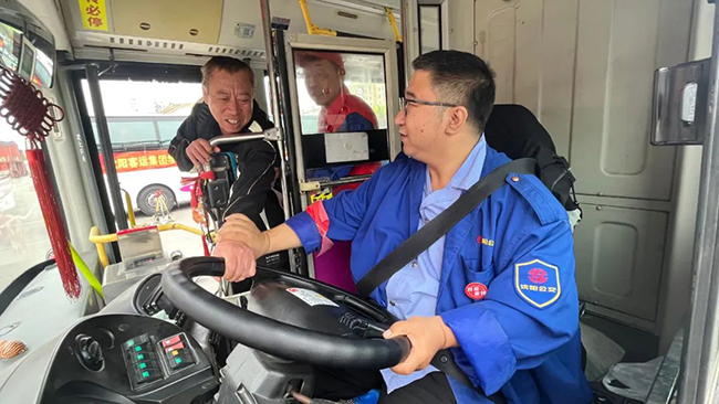 培訓(xùn)結(jié)束后,在場(chǎng)人員來到戶外停車場(chǎng)開展綜合應(yīng)急演練。本次演練模擬了乘客攜帶不明液體乘車時(shí)駕駛員或安全員的例行檢查,乘客與駕駛員發(fā)生爭(zhēng)執(zhí)時(shí)危險(xiǎn)舉動(dòng)的處置方法,車內(nèi)自燃時(shí)駕駛員疏散乘客下車的方式及正確使用滅火器的方法和注意事項(xiàng)。