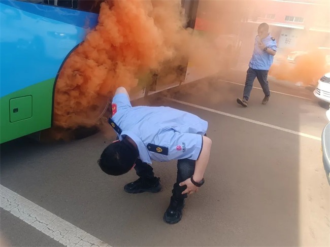 在現(xiàn)場演練環(huán)節(jié),黃河公司相關(guān)負(fù)責(zé)人現(xiàn)場講解并模擬在公交車輛突發(fā)火災(zāi)事故中,駕駛員如何采取應(yīng)急措施,疏散乘客到安全位置;如何正確使用滅火器進(jìn)行滅火,最大限度保障人民生命財產(chǎn)安全;遇到乘客攜帶不明液體乘車時,駕駛員如何正確安檢示范;車廂內(nèi)乘客與乘客之間發(fā)生沖突時,駕駛員的正確處置方法等。