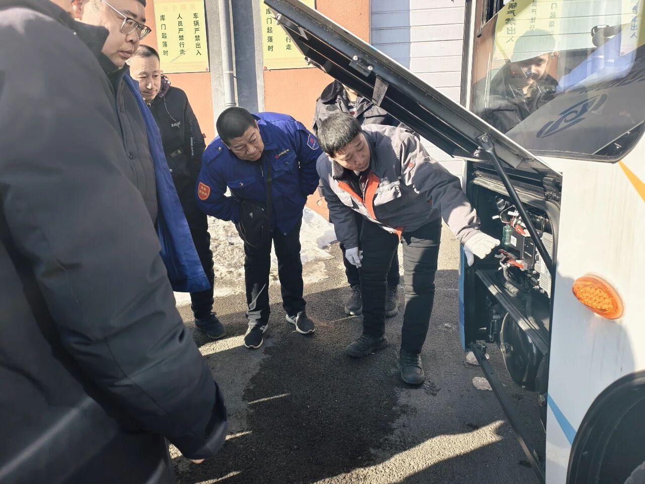培訓中,主講人系統(tǒng)介紹了新投運公交車輛的整體情況,并圍繞內外設備、中控系統(tǒng)、動力與制動系統(tǒng)以及關鍵零部件等核心內容,進行了實地講解,幫助參訓人員建立對新車型技術結構及運行特點的框架性認知。針對新車技術狀態(tài),培訓明確了相應的維護保養(yǎng)標準,詳細講解了運營前檢查要點、行車安全注意事項以及常見故障處理方法。
