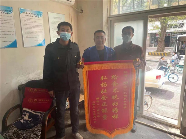 5月3日一早,高先生再次來(lái)到297站務(wù)室,一直等到李秀明跑車回到站務(wù)室后,將自己特意制作的錦旗交到他手中,再次表達(dá)自己對(duì)這位好心駕駛員的誠(chéng)摯謝意。