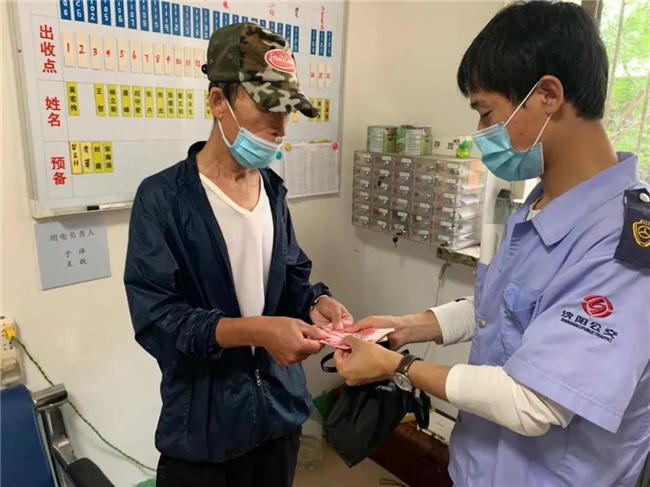 張恩勇?lián)睦先说纳眢w,關切的問道:“大爺,天氣這么熱,您要去哪???”老人有些語無倫次,一會兒說回渾南,一會說去沈北。張恩勇見老人異常,為防止其發(fā)生意外,便安排他在距離自己最近的座位上坐好,并安撫他不要下車。