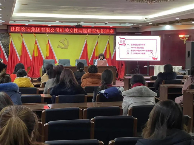 講座邀請沈陽鐵西疾控疫苗預防接種中心主任劉月主講。劉主任通過病例分析及圖片演示的形式向廣大女職工認真普及了兩癌的相關(guān)健康知識及預防措施,呼吁女職工關(guān)愛自身健康,并對女職工提出的問題一一作了耐心的解答。