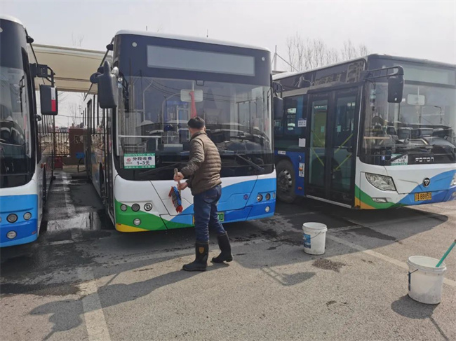 3月21日和23日,各車隊駕駛員提早到達車隊,對車輛進行清潔工作,并對車廂內(nèi)的每個角落進行消毒,特別是對乘客所能接觸到的扶手,座椅縫隙,上下車門,車窗開關把手處進行了仔細擦拭,做到全車消殺無死角、全覆蓋。同時,車隊管理技術人員對車輛進行嚴格檢查,確保車輛技術狀況良好,保障市民安全出行。