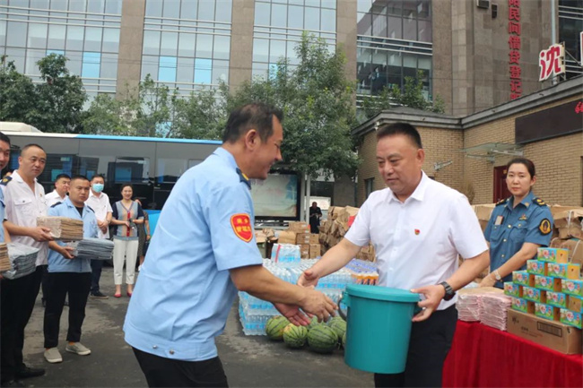 8月4日上午,鑫暢公司開展了“戰(zhàn)酷暑、保安全”送清涼獻(xiàn)愛心活動(dòng),為機(jī)關(guān)和各車隊(duì)發(fā)放礦泉水、香皂、毛巾、西瓜等防暑降溫用品,為一線職工遞上絲絲情懷。