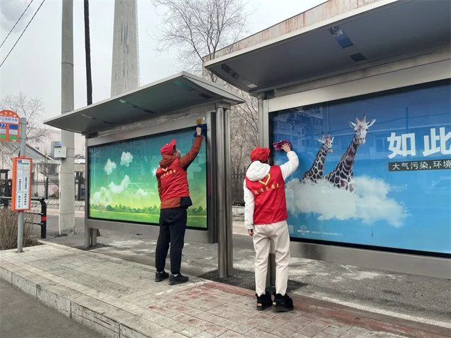 參加活動的青年志愿者們頭戴小紅帽,身披“沈陽市青年志愿者”字樣的紅馬甲,清洗公交車輛,擦拭候車廊站牌,清掃場區(qū)站區(qū)站務室環(huán)境衛(wèi)生,擺放站區(qū)周邊共享單車,使環(huán)境衛(wèi)生煥然一新、整潔有序。同時,志愿者們通過公交車車內(nèi)廣播、站區(qū)廣播、橫幅標語、LED屏等載體,向過往市民、乘客宣傳“暖冬行動”,積極引導廣大乘客文明乘車,爭做文明出行的踐行者,為創(chuàng)建美麗沈陽貢獻力量。