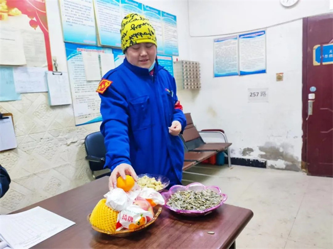 來(lái)到105路車隊(duì),一串串拉花、氣球、春聯(lián)和福字等年味氣息撲面而來(lái),處處呈現(xiàn)出喜氣洋洋歡度春節(jié)的濃厚氛圍。