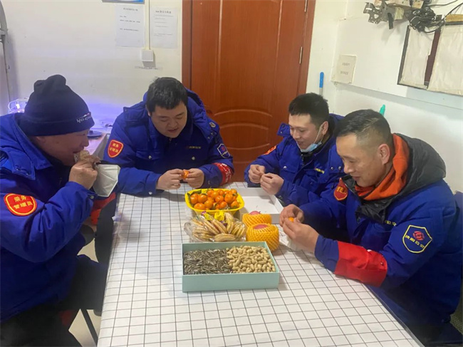 除夕當(dāng)天,車隊(duì)為堅(jiān)守崗位的職工精心準(zhǔn)備了“年夜飯”,大家歡聚一堂,共度新春佳節(jié)。