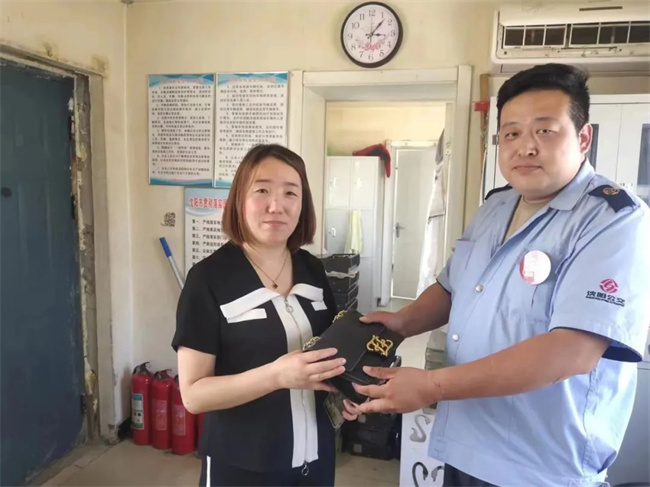 一小時(shí)后,一位姓王的女士趕到車隊(duì),詢問是否有人拾到一個編織袋,核實(shí)無誤后,吳喆將失物交還給王女士。