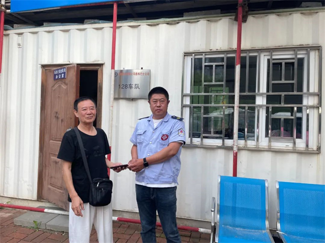 6月24日,乘客程先生手持錦旗再次來到128路車隊(duì),并當(dāng)面向駕駛員閆曉石表達(dá)了感謝。