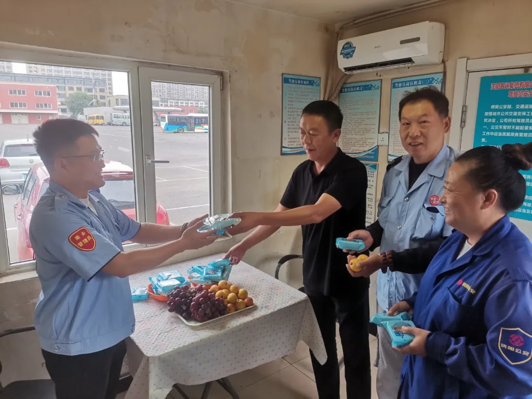 中秋佳節(jié),240路車隊(duì)為駕駛員準(zhǔn)備了月餅和水果。