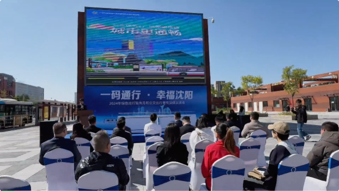 9月22日是世界無車日,“一碼通行、幸福沈陽”——2024年綠色出行宣傳月和公交出行宣傳周倡議活動在沈陽站西廣場公交樞紐站舉行。