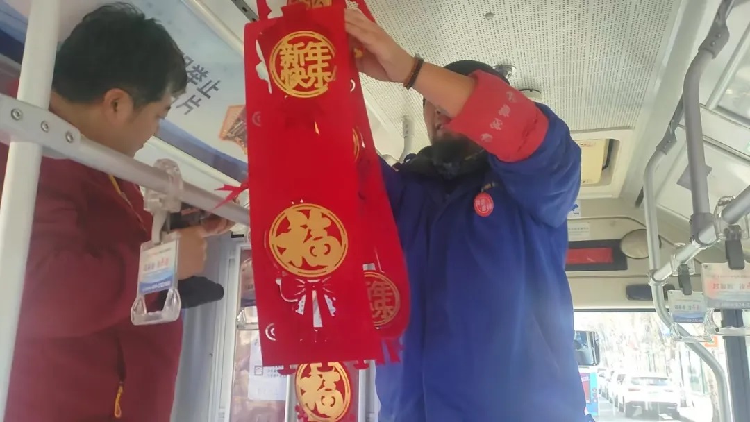 據(jù)了解,元旦前夕,沈陽客運集團(tuán)按照全市“我是雷鋒”——沈陽市窗口行業(yè)文明誠信服務(wù)寵客(qiě)行動工作安排,落實全市“雙節(jié)”節(jié)日氛圍布置工作要求,積極開展“布置車廂,扮靚沈陽”行動,各車隊利用行車間歇和休息時間裝扮車輛,懸掛新年拉花、紅燈籠,張貼新年窗花及融入“蛇年”元素的貼紙等。目前,已有1188臺途經(jīng)主要街路、景區(qū)、商業(yè)街區(qū)的公交車輛完成了裝飾,車內(nèi)年味十足,客運集團(tuán)計劃在春節(jié)之前完成全部運營車輛的裝飾布置工作。