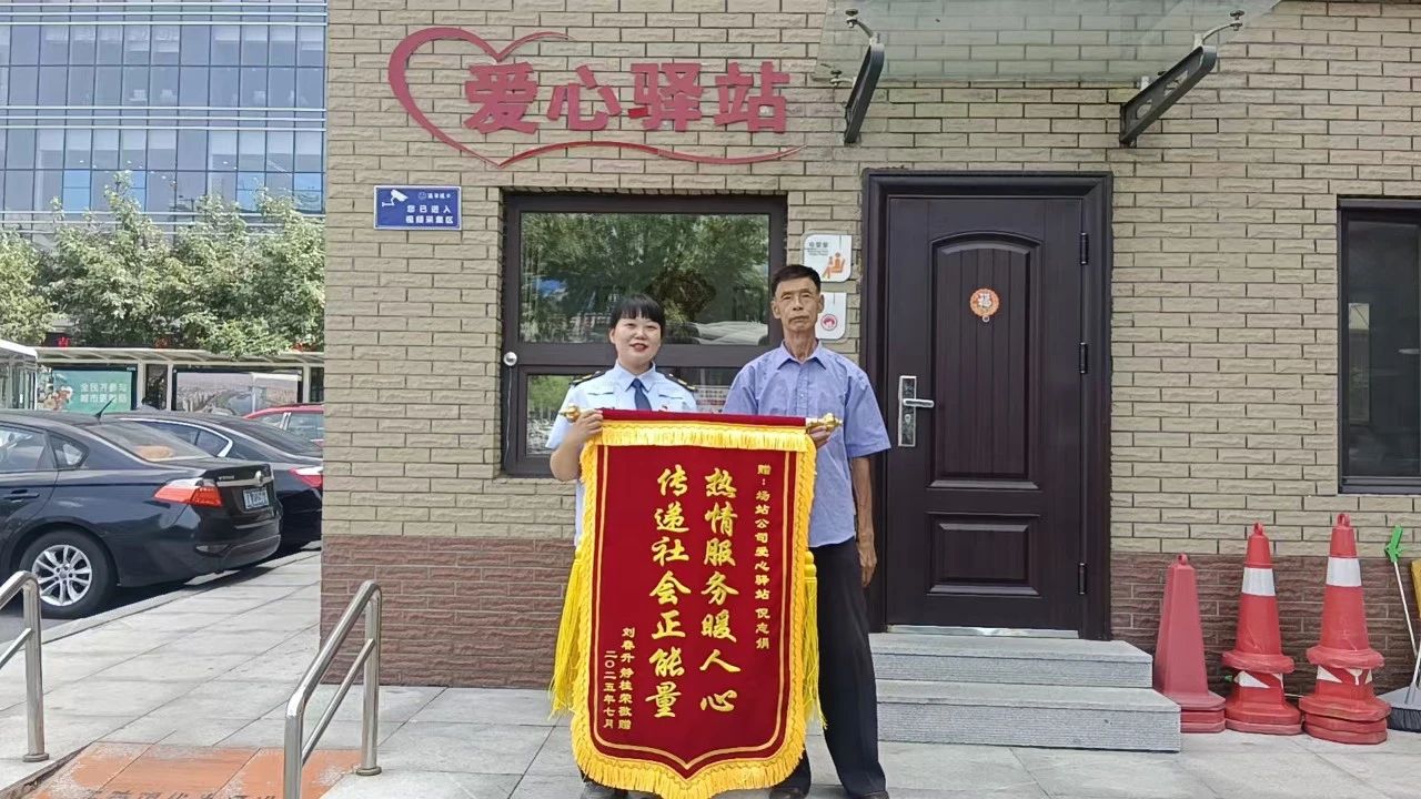 7月28日13時許,一位92歲高齡老人焦急來到沈陽北站公交樞紐愛心驛站,稱新購手機(jī)(價值五千余元)及次日看病急需的病歷在乘車時不慎丟失。老人情緒緊張,無法說清細(xì)節(jié)。驛站工作人員迅速安撫,請其入座并遞上溫水消暑,同時立即報警并聯(lián)系其乘坐的209路車隊(duì)協(xié)調(diào)排查監(jiān)控。工作人員倪志娟主動陪伴聊天緩解焦慮,得知老人是抗美援朝老兵家屬更感責(zé)任在肩。不久車隊(duì)傳來喜訊:失物找到并由駕駛員隨車帶回驛站。老人取回物品時喜悅?cè)f分,連聲道謝。三日后,家屬專程送來錦旗,這份認(rèn)可激勵場站公司全員堅(jiān)守服務(wù)初心。