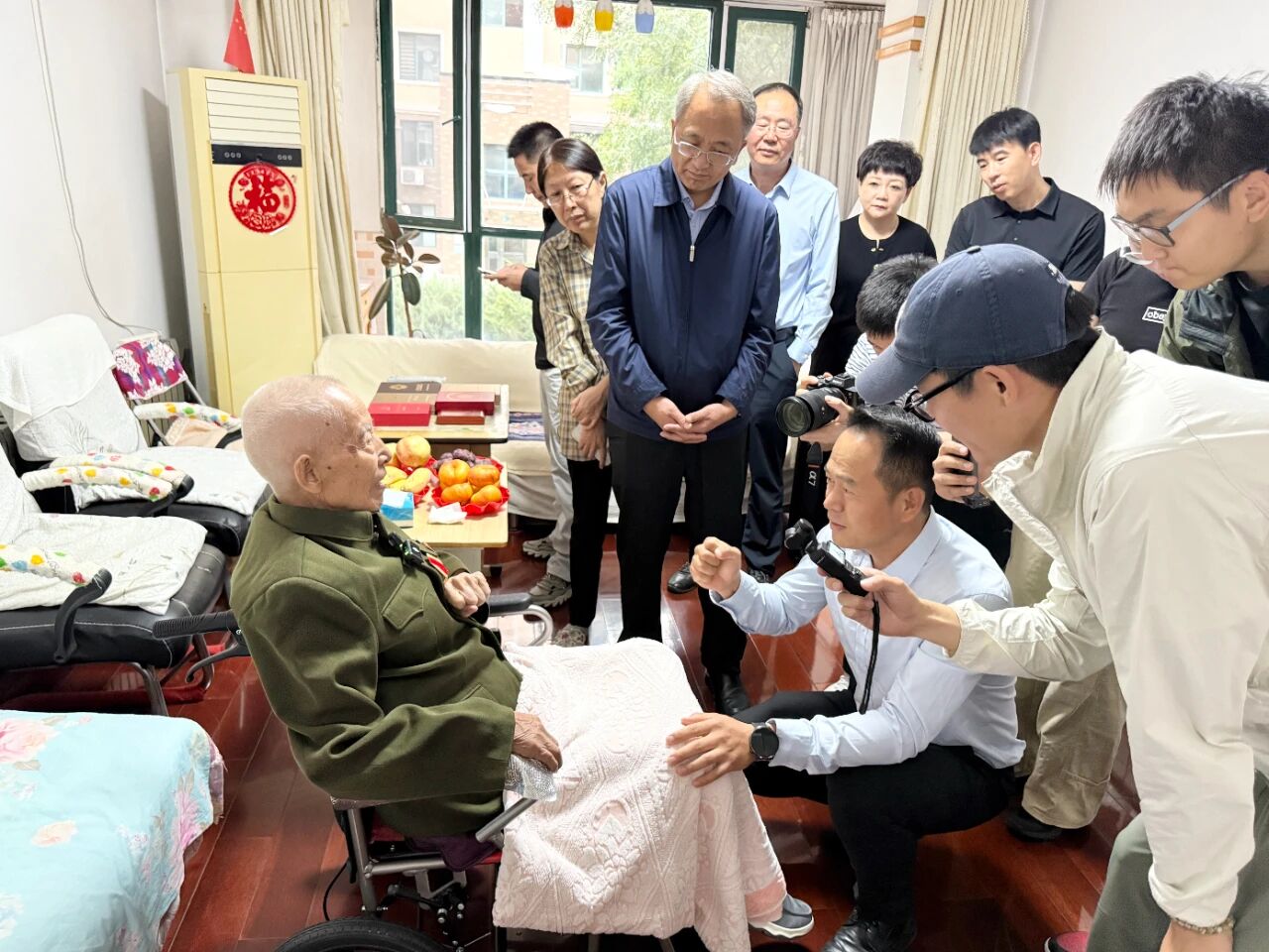 9月22日,第三屆退役軍人事務領域網絡正能量基層行活動慰問組一行,專程來到原沈陽電車公司勞服公司黨總支書記、工會主席韓宗森同志家中,看望慰問這位革命老前輩。